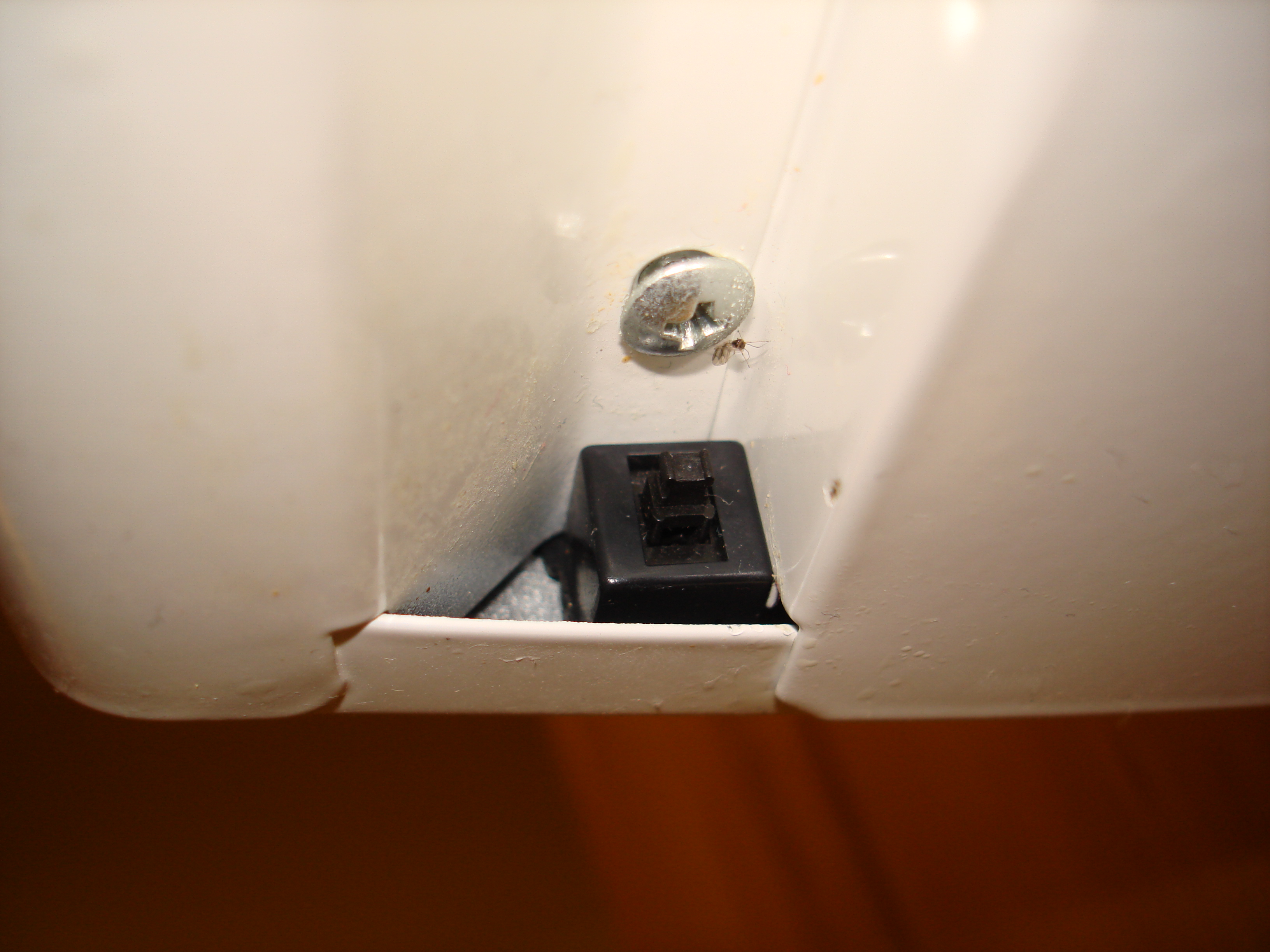 We added a custom power button for the computer on the under side of the range hood tucked nicely into the corner. This was actually super easy to do. We just grabbed an old PC, ripped out the power button, extended the wires and pushed the button in place.
